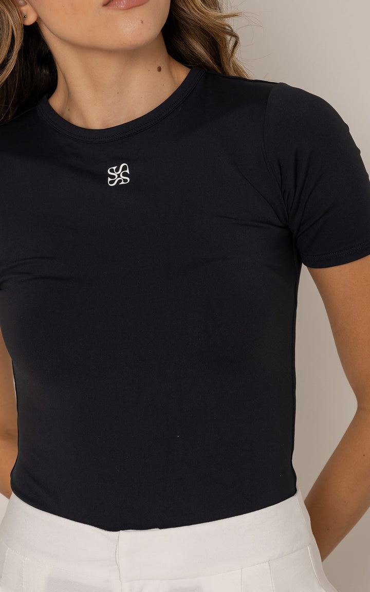 • Diseño: Body tipo camiseta básica con cuello alto y aplique en alta densidad en la parte delantera.