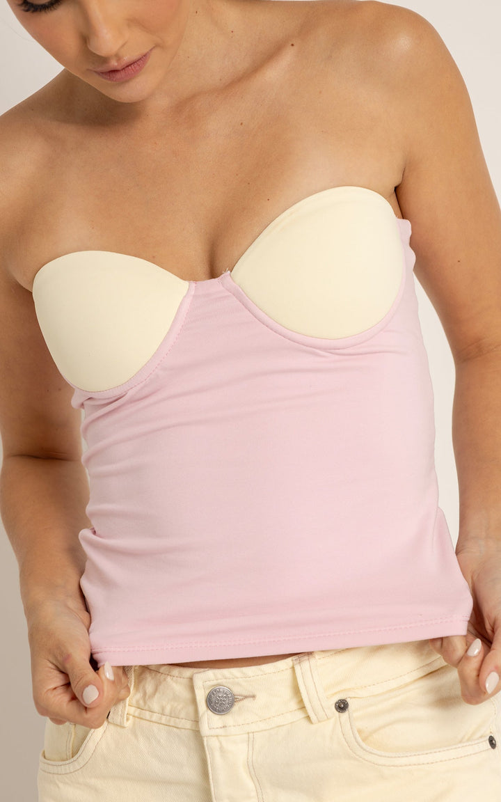 • Diseño: Blusa strapless con copas en contraste y varillas internas laterales que brindan soporte.