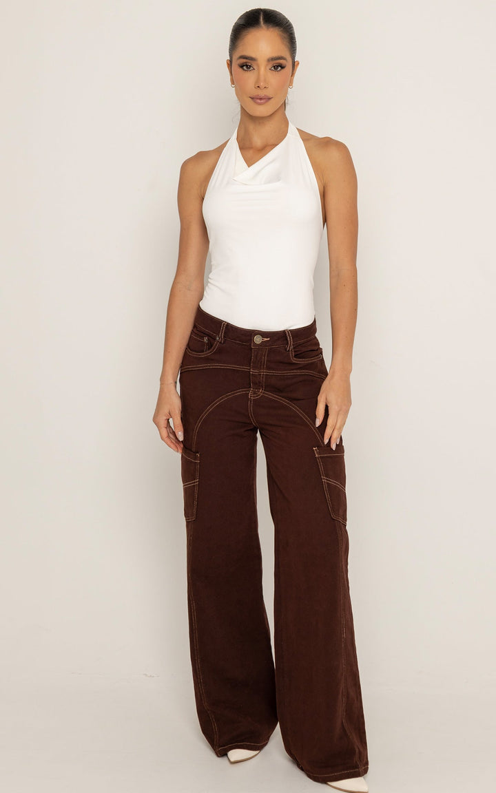La Blusa Willow es una prenda femenina y ligera que destaca por su escote drapeado tipo “cowl” y silueta halter, ideal para climas cálidos o para looks sofisticados con un toque relajado. Su diseño realza la parte superior del cuerpo mientras que el fit entallado resalta suavemente la figura sin perder comodidad.