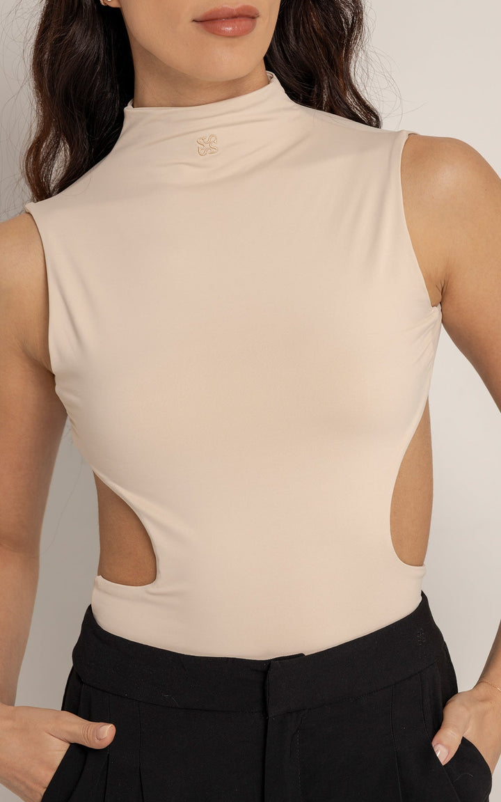 Diseñado para destacar con elegancia y sensualidad, el Body Julia combina un corte minimalista con aberturas laterales que revelan la piel sutilmente. Su cuello alto y silueta limpia aportan sofisticación, mientras que su tejido suave y elástico asegura un ajuste cómodo y favorecedor. Una pieza clave para elevar tus looks con actitud. Talla única se ajusta desde S hasta la L.