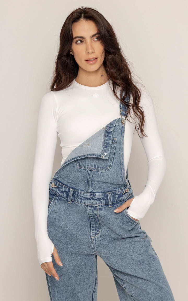 - Diseño: Body con cuello en "U", aplique en alta densidad en la parte del cuello y mangas largas con efecto tipo guante.