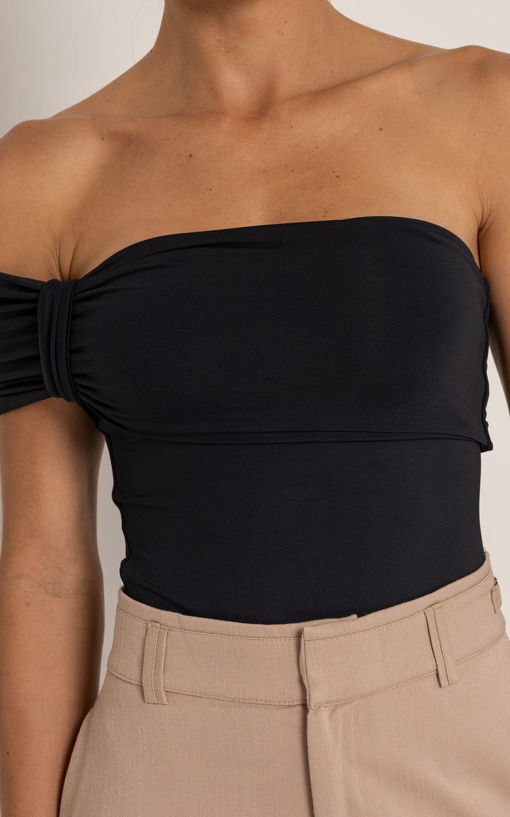 El Body Savor es una prenda que combina sensualidad y elegancia en una silueta asimétrica de alto impacto. Su diseño de un solo hombro con drapeado frontal crea un efecto visual favorecedor, mientras que el ajuste ceñido realza las curvas de manera sutil y cómoda.