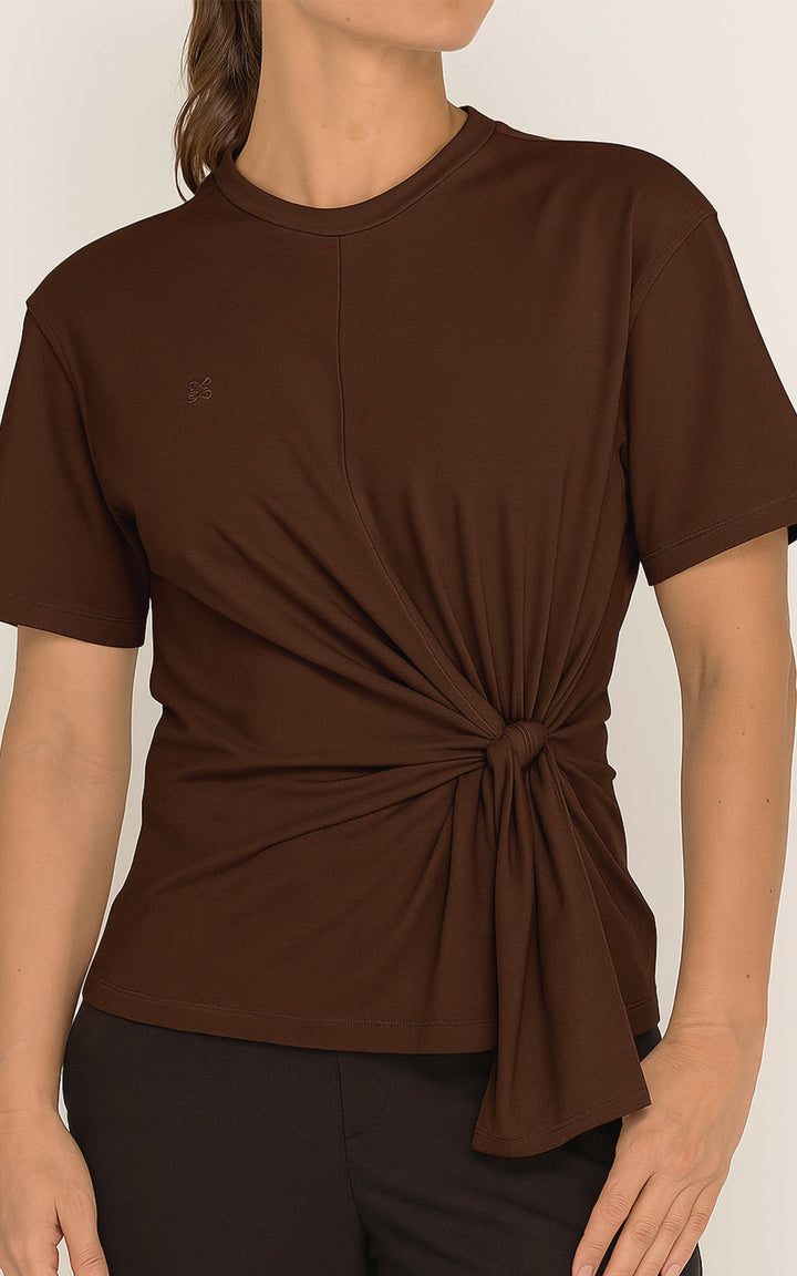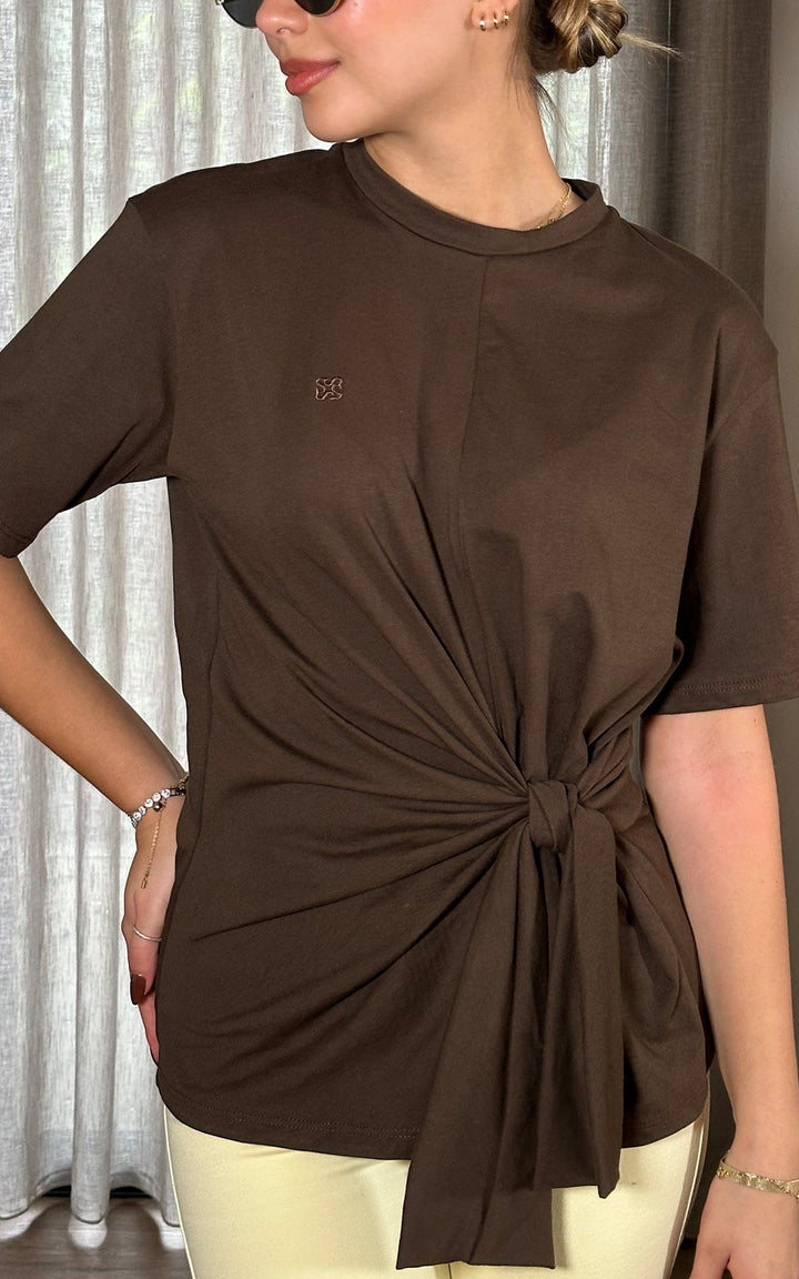 La Camiseta Alana transforma lo esencial en una prenda con diseño y carácter. Su silueta básica se reinventa gracias al nudo lateral que drapea sutilmente la tela, creando un efecto envolvente que estiliza la figura sin perder comodidad.