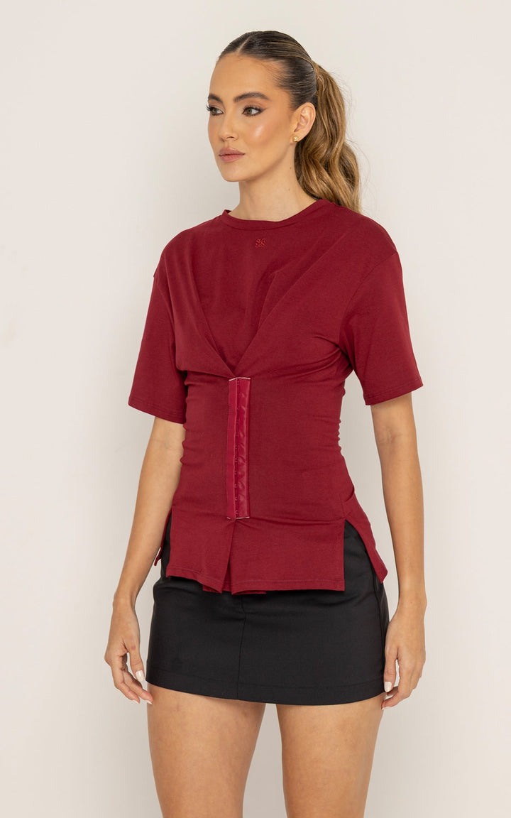 Nuevos colores de la más amada por ustedes, nuestra Blackbuster T-Shirt es una prenda audaz que combina la comodidad del algodón con un diseño único que evoca un toque de elegancia y estilo. Confeccionada en tela tipo algodón, esta camiseta presenta broches tanto en la parte delantera como trasera, creando un efecto corset que redefine el clásico diseño de t-shirt. El ajuste favorecedor y la estructura de los broches le dan una silueta más estilizada, transformando una pieza básica en una declaración de moda.