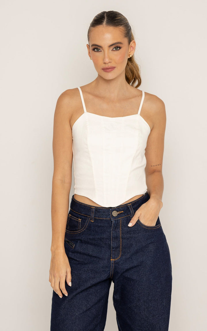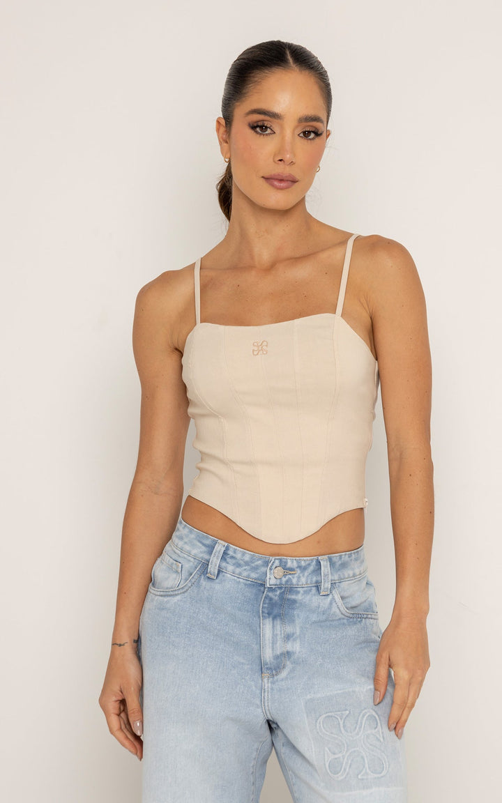 El Corset Morning está elaborado en un tejido estructurado con sutil elasticidad que moldea la silueta sin sacrificar comodidad. Su diseño entallado con varillas marcadas crea un efecto esculpido, mientras que las cargaderas delgadas y el escote recto equilibran la estructura con suavidad.