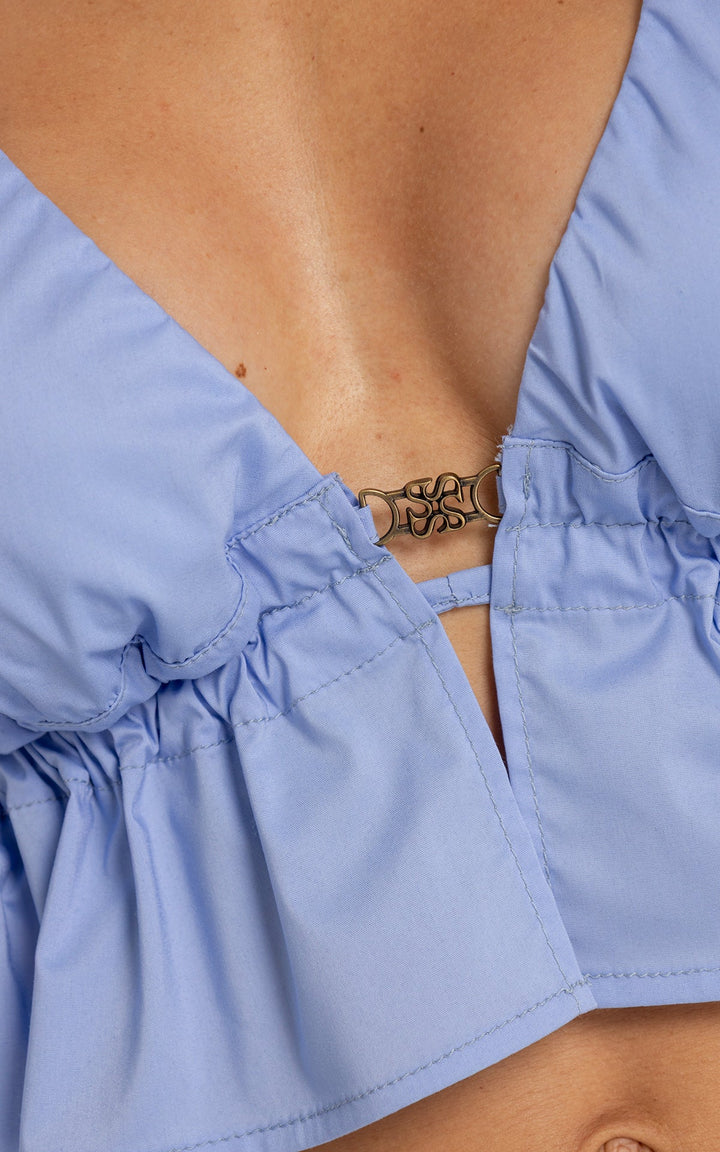 Femenino, delicado y con un toque atrevido. El Crop Top Annora resalta por su escote profundo, silueta estructurada y detalles pensados para resaltar la figura. Con copas fruncidas, ajuste en la parte baja tipo peplum y delicados tirantes dobles en la espalda, esta prenda es ideal para quienes buscan un top diferente, versátil y sofisticado.