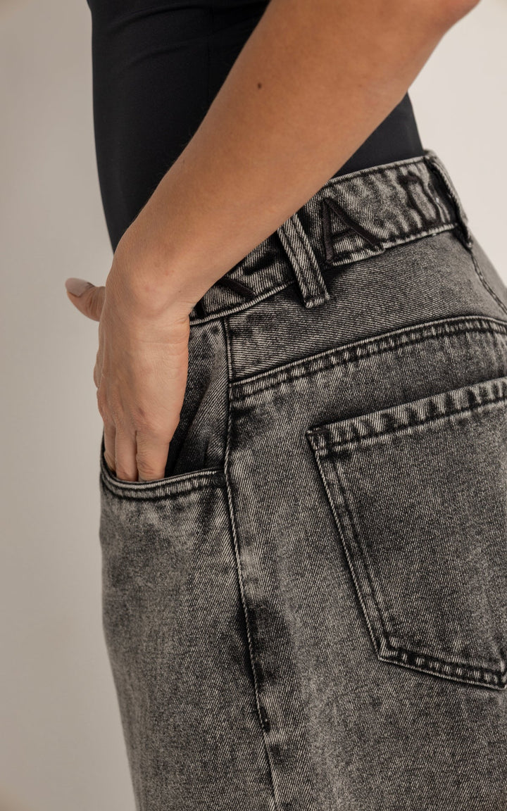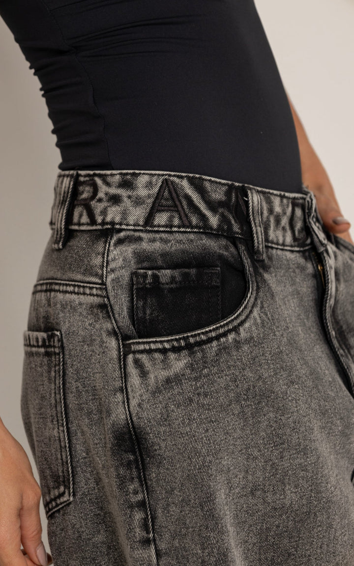 El diseño incorpora bolsillos clásicos y un bordado exclusivo en la pretina con el nombre de la marca, detalle sutil que lo diferencia y le da identidad. El lavado tiene una apariencia desgastada que realza el look con un aire auténtico y atemporal.