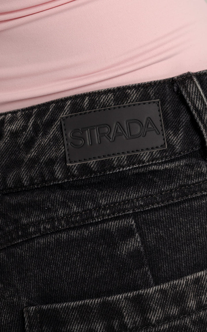 Cuenta con bolsillos clásicos, cierre frontal con botón metálico y dobladillo amplio que acentúa la caída del pantalón. El lavado profundo le da un aire grunge refinado, ideal para looks con actitud.