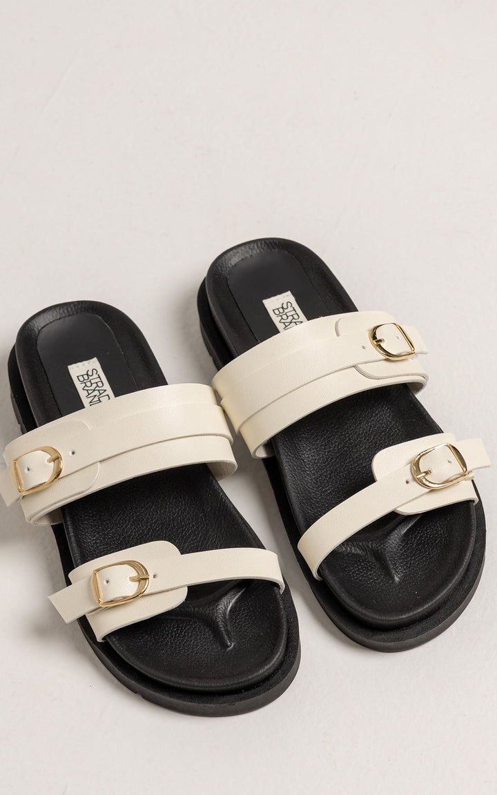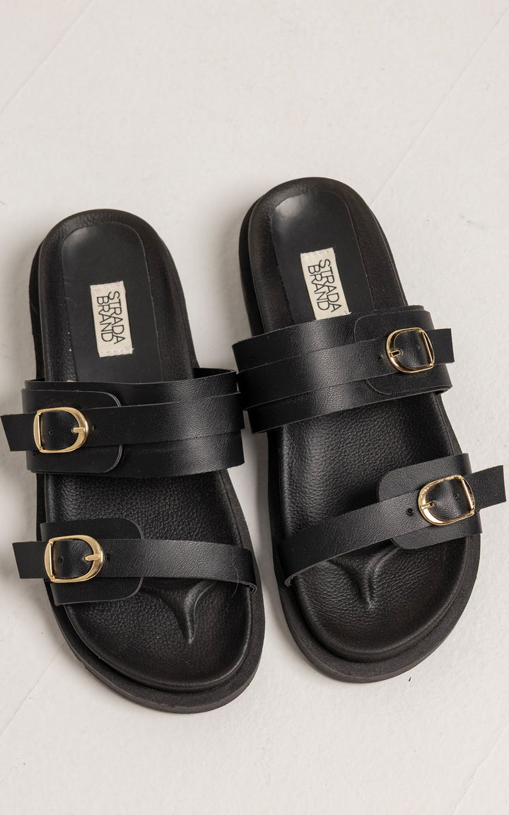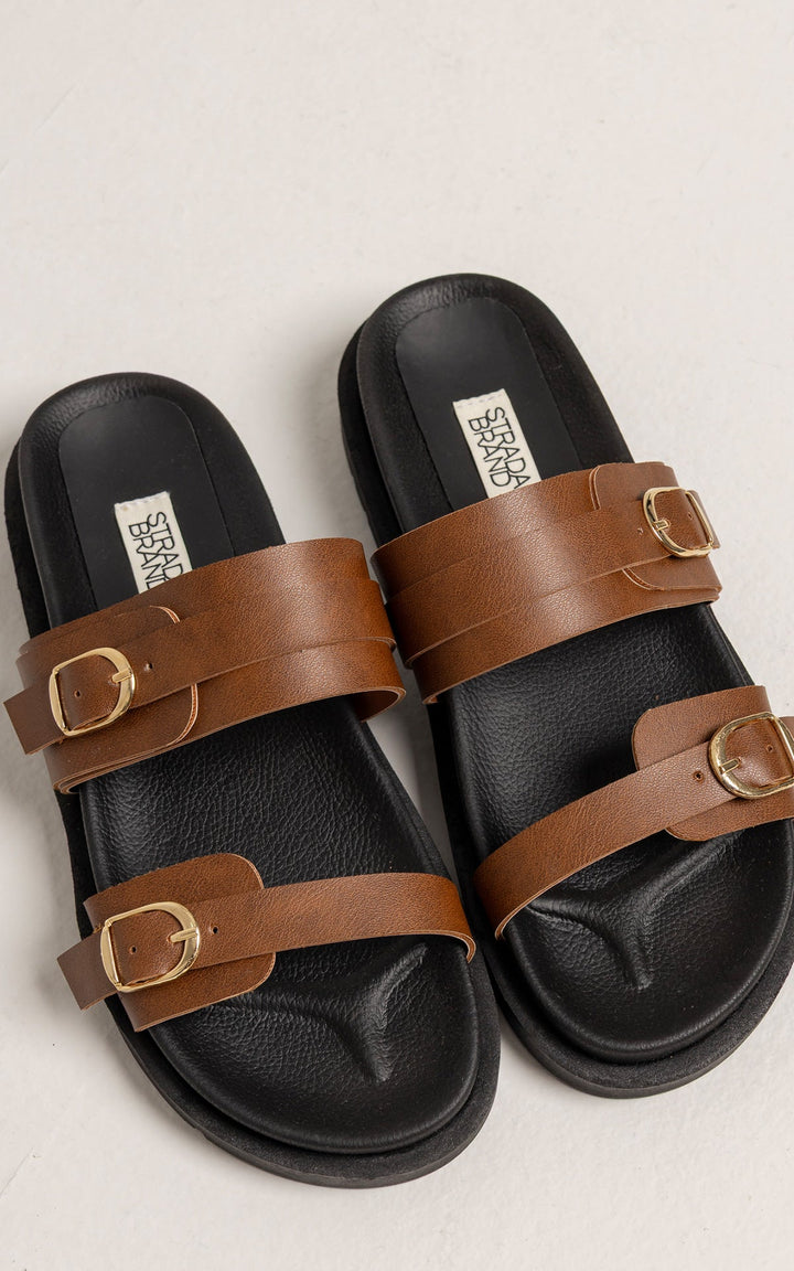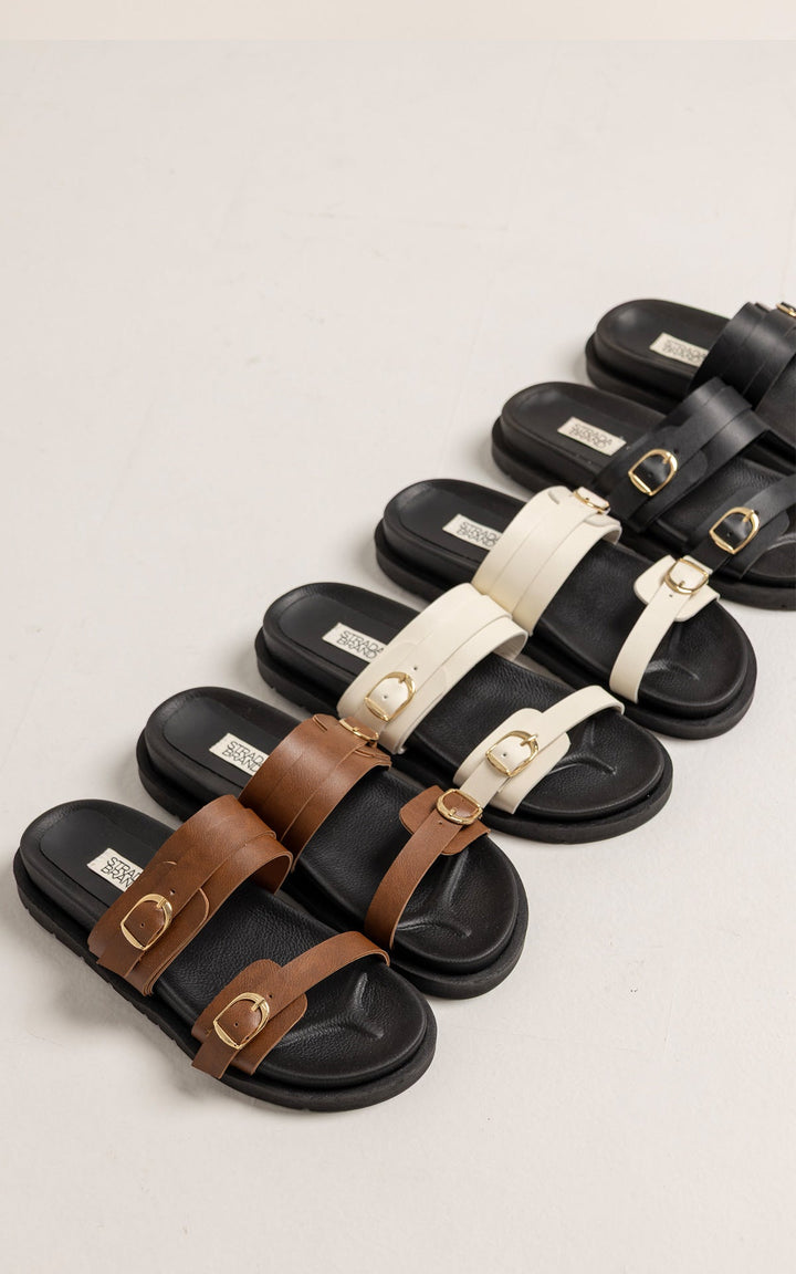 La Sandalia Noa está elaborada en cuero sintético con acabado suave y resistente. Su diseño de doble correa ajustable con hebillas metálicas permite un calce firme y personalizado, mientras que la base acolchada proporciona confort durante todo el día.