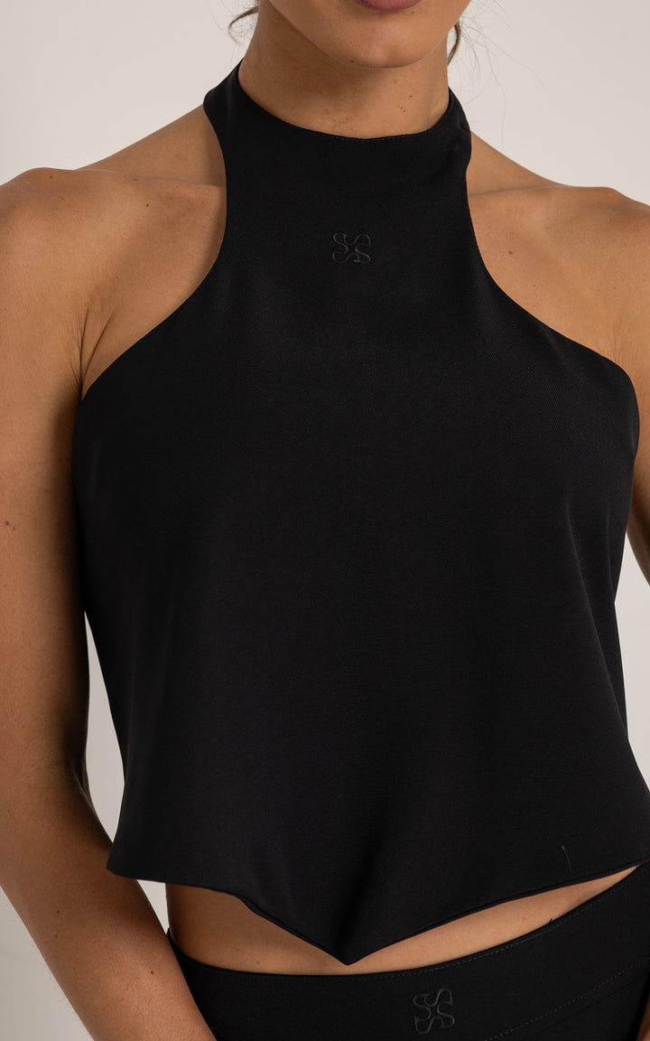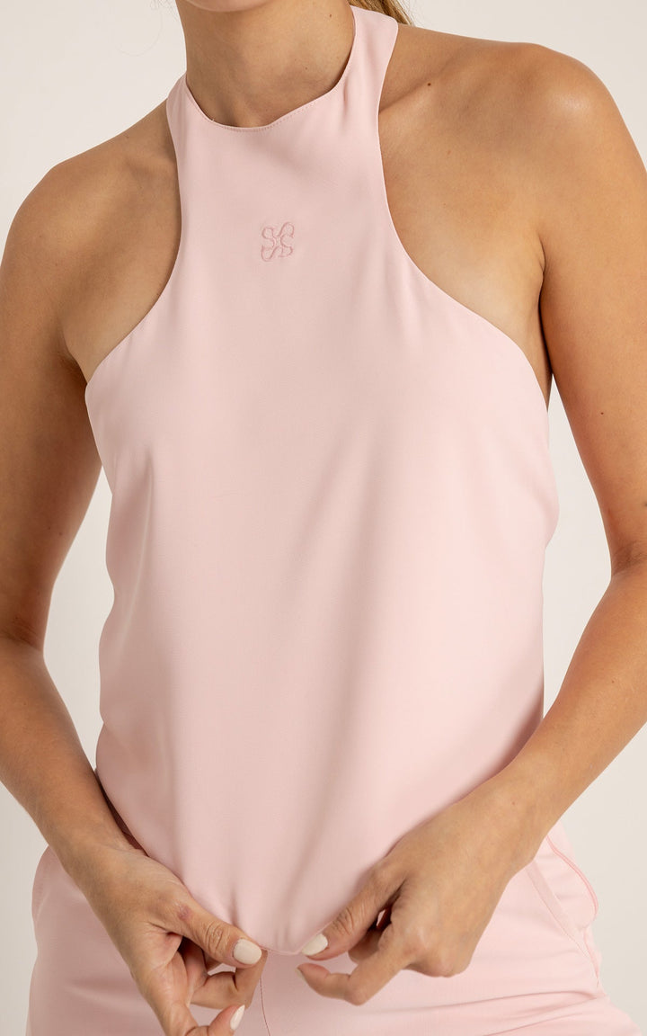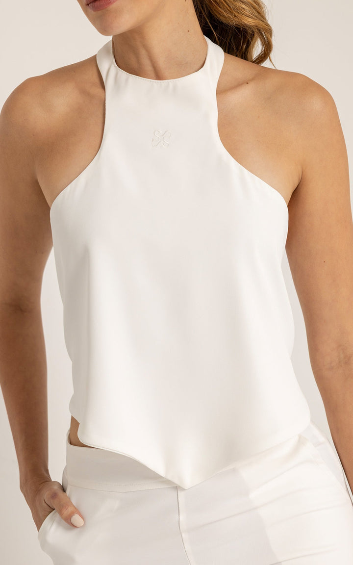 • Top halter con cuello cerrado y caída fluida