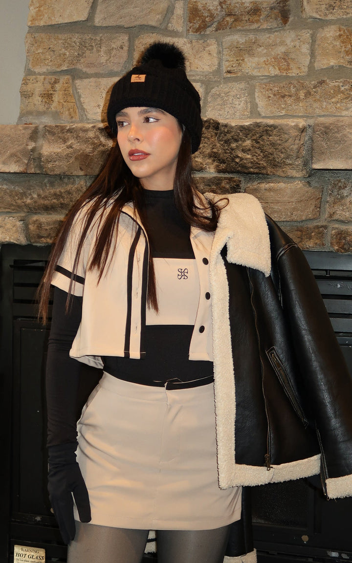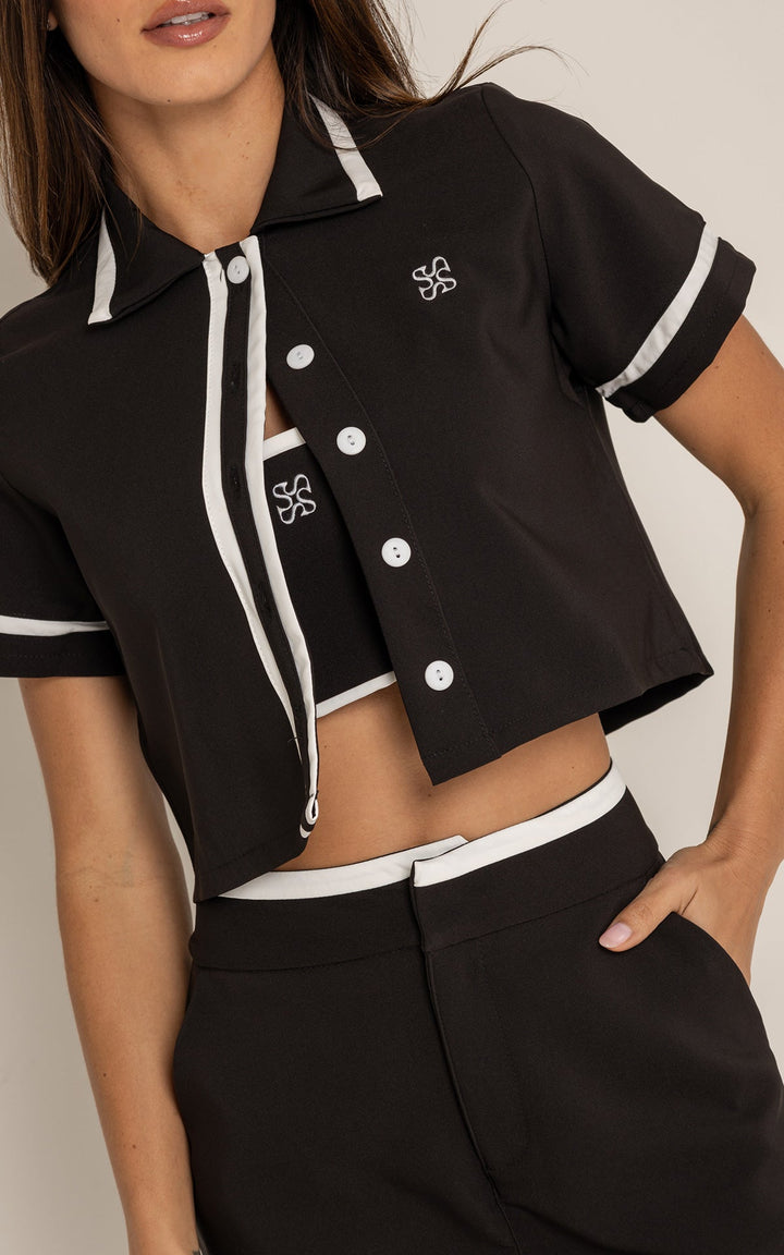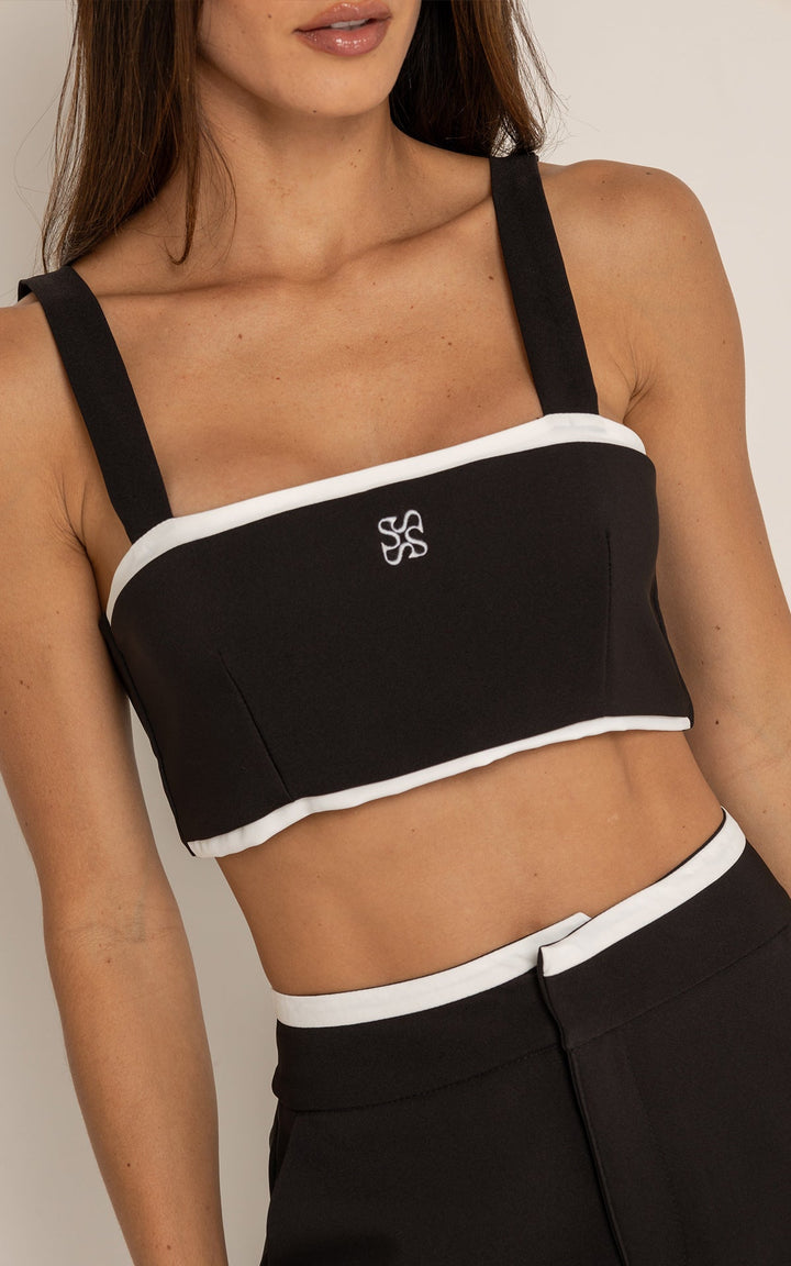 • Croptop: Confeccionado en tela ajustada, incluye un cierre atras funcional y bordado central que resalta el estilo minimalista.